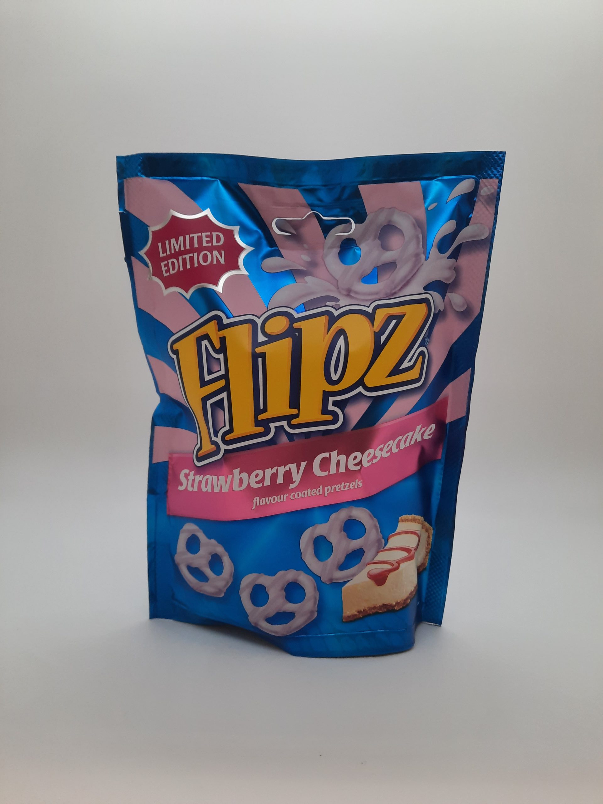 Erdbeer-Käsekuchen-Geschmack-Überzug (66 %) [Zucker, Palmöl, getrocknete Vollmilch, Magermilchpulver, Farbstoff (Rote Bete), Emulgator (Sojalecithin), natürliche Aromen, Säuerungsmittel (Zitronensäure), Pflanzenauszug (Spirulina)], Weizenmehl, Salz, Invertzuckersirup, Emulgator (Sojalecithin), Gerstenmalzextrakt, Backtriebmittel (Natriumbicarbonat)