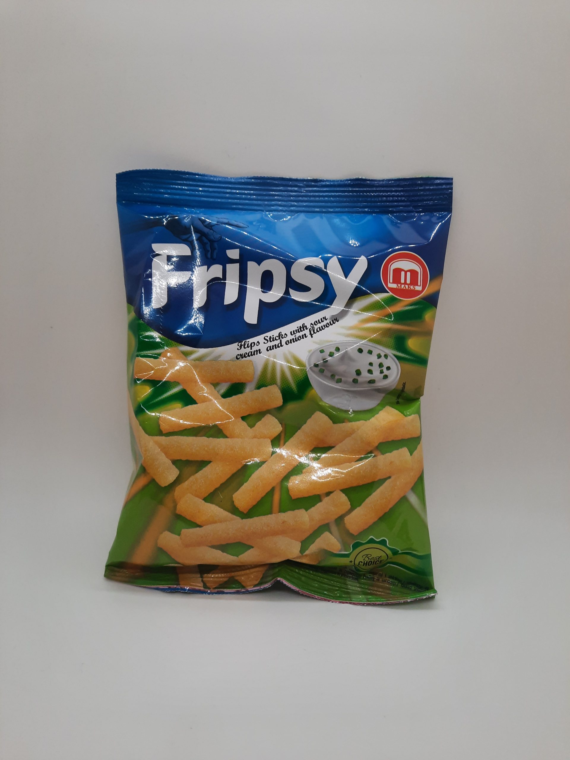 Maismehl, Palm Olein, Weizenmehl, Kartoffelflocken, Aroma von Sauerrahm und Zwiebeln (naturiche Aromastoffe (Milchproteine), Geschmacksverstärker: Mononatriumglutamat, Zwiebel, Reismehl, Knoblauch, Petersilie, Geschmacksverstärker: Dinatriuminosinat, Binatriumguanylat, Farbstoff, Carotin), Zucker, Salz, Emulgator: Sojalecithin