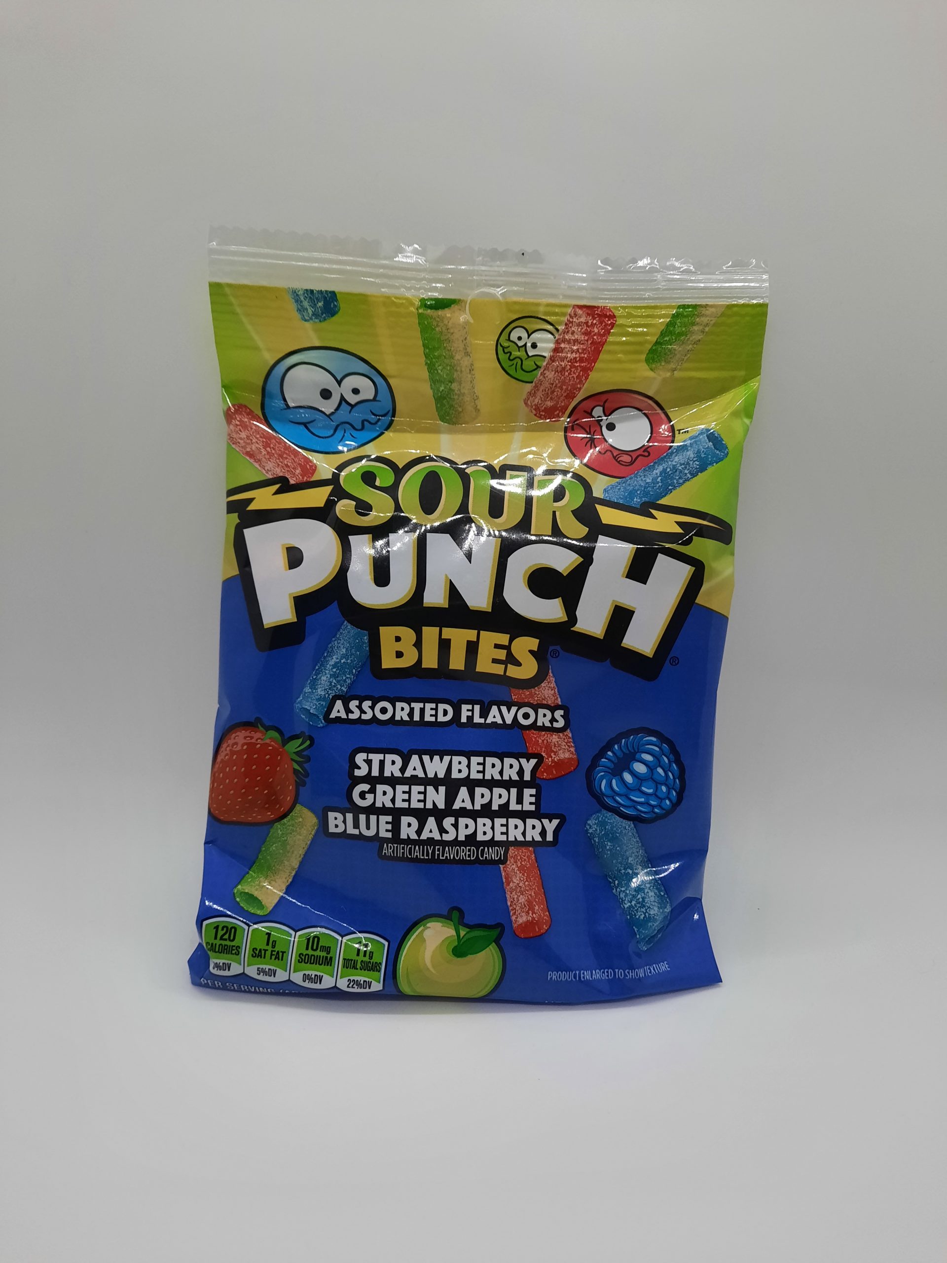 Maissirup, Zucker, Weizenmehl, Maissirup mit hohem Fruktosegehalt, Zitronensäure, Apfelsäure, Weinsteinsäure, modifizierte Speisestärke, Palmöl, Glycerilmonostearat, Natriumcitrat, Glycerin, künstliche Aromen, Farbstoffe (E133*,E102*,E 129)